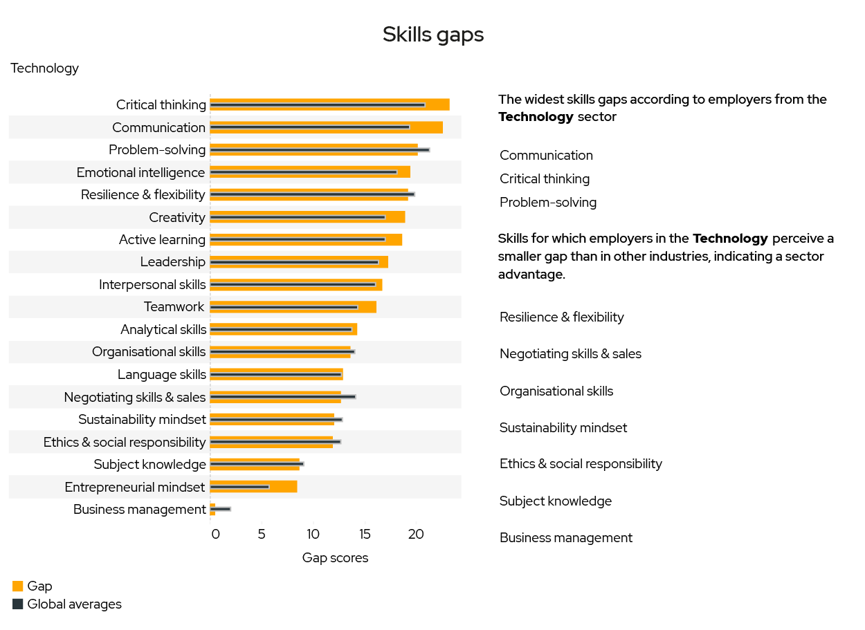 - Problem-solving and communication are among the widest gaps across industries.