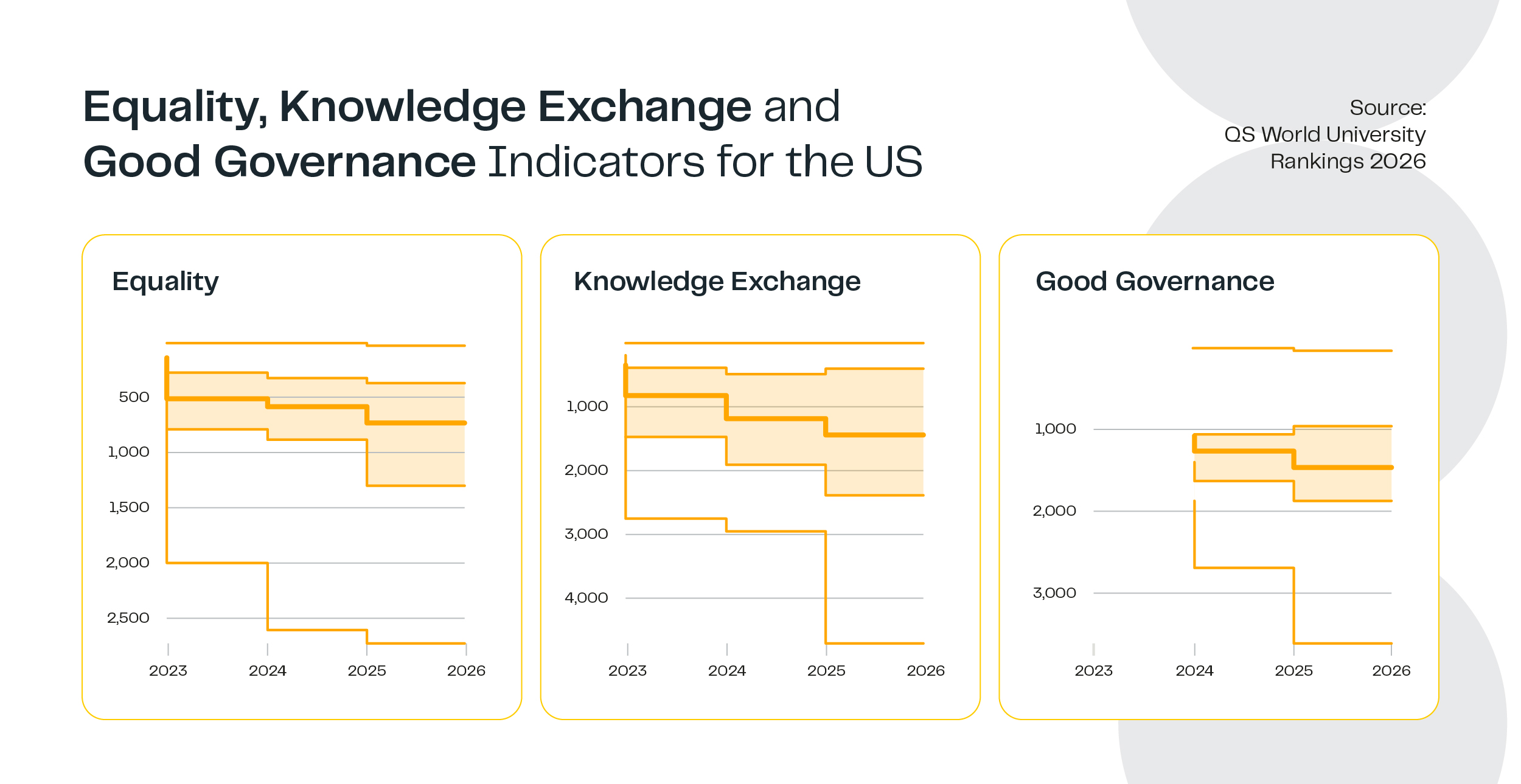 However, despite these positive strides, US universities have seen a decline in their median rank across sustainability indicators, particularly in Equality, Knowledge Exchange, and Good Governance. This suggests that while environmental sustainability is being maintained, social equity, collaboration, and governance structures remain areas for continued growth. This shift also reflects growing sustainability momentum among global institutions, signaling that US universities now face stronger competition - and a renewed opportunity to lead by example as the global higher education landscape becomes more sustainability-driven.